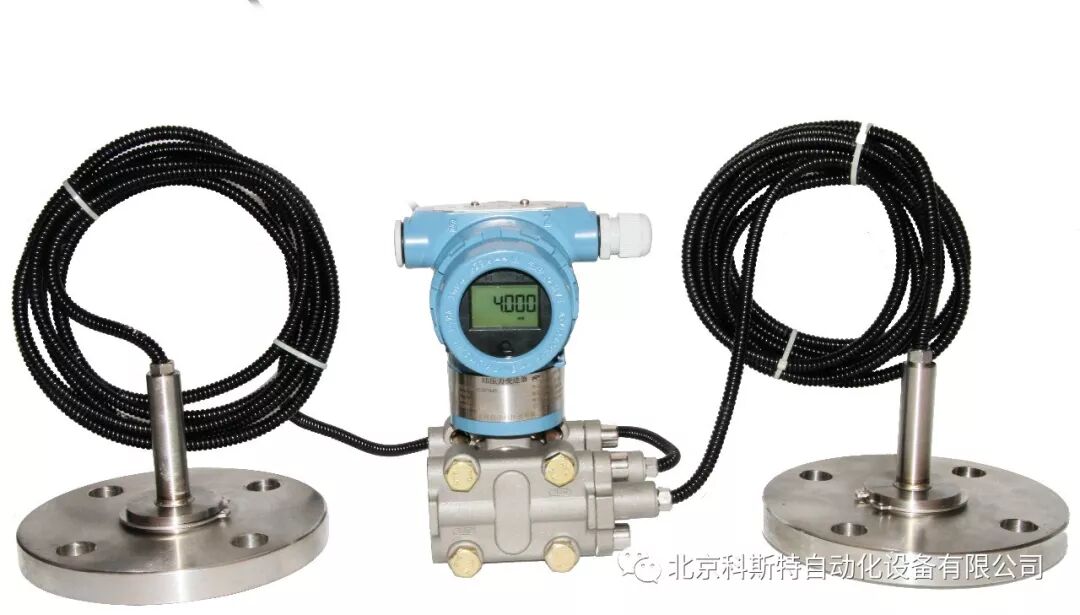 双法兰是指变送器的正、负压侧均是法兰结构,可以直接与需测量的容器、管道相连。优点是安装容易,校验方便,不需量程迁移。缺点是测量精度不高,由于法兰与变送器之间采用弹性软管连接,内部应该是充满硅油,所以对介质压力变化的传递有一定的偏差,外界温度变换多多少少对硅油有一些影响,所以测量反映上就有一定的误差。