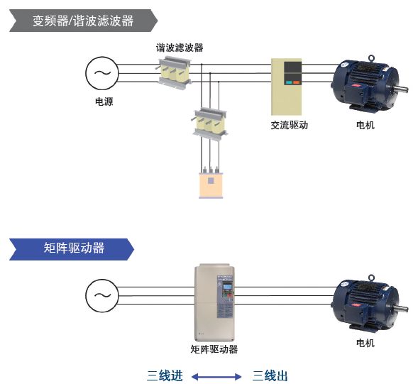 谐波滤波器是管理变频器谐波的常用方法,但采用矩阵驱动技术可以在没有增加外围设备和成本的情况下为用户增加效益。